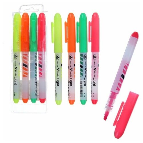 Набор маркеров-текстовыделителей, 4 цвета, 4 мм, с жидкими чернилами./В упаковке шт: 1