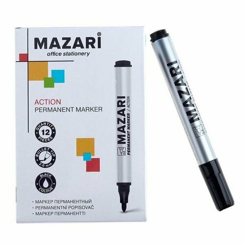 Маркер перманентный Action, 2.0 мм, чёрный, 12 шт.
