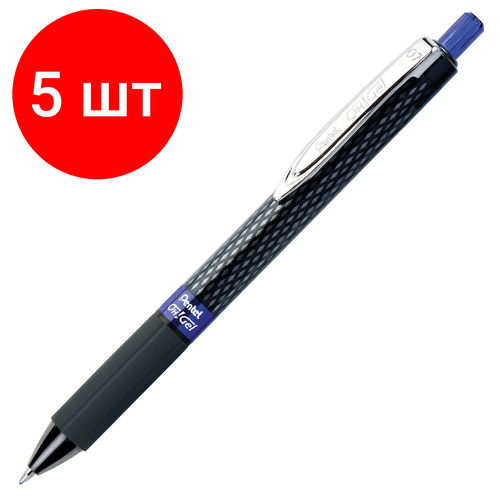 Комплект 5 штук, Ручка гелевая автомат. PENTEL K497-С OhGel д. ш.0.7мм р ез. манж син ст