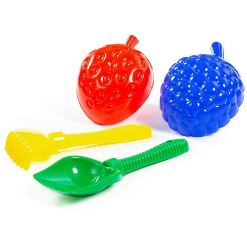 Набор для песочницы полесье №412 лопата №6, грабли №6, формочки "Фрукты" большие 2 шт
