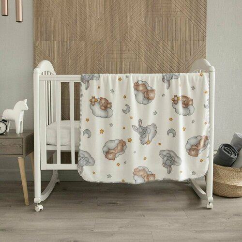 Плед для новорожденных плюшевый 100х150 см. Плед в кроватку, коляску "Зайки на белом" Baby Nice