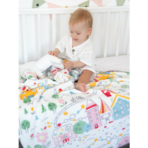 Плед для новорожденного 100х140 пушистый детский, Baby Nice, в кроватку, коляску, Город игр