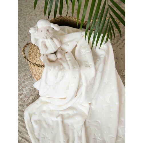 Плед плюшевый 100х118 см для новорожденных в кроватку коляску , молочный