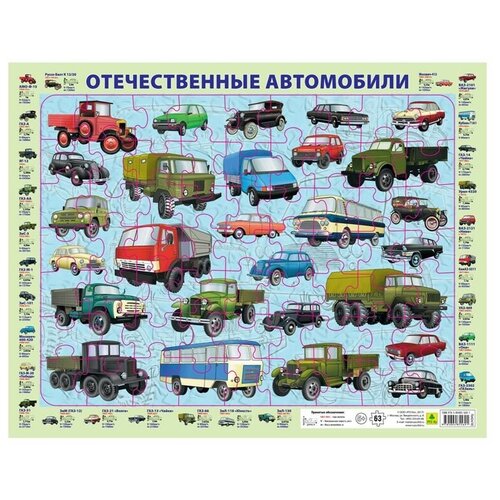 Пазл РУЗ Ко Отечественные автомобили, на подложке (36х28 см), 63 дет.