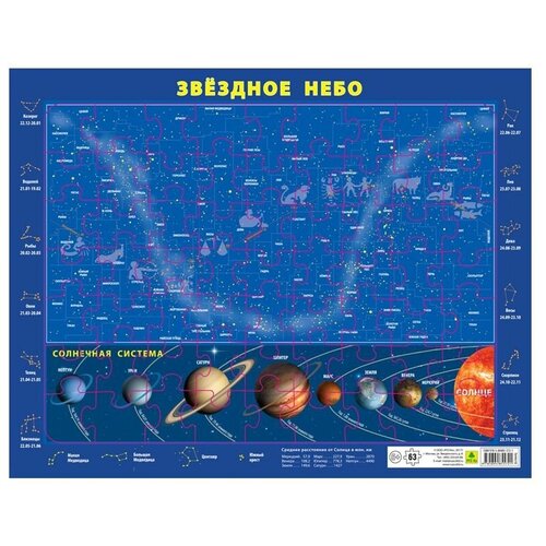 Пазл РУЗ Ко Карта звездного неба и Солнечной системы, на подложке (36х28 см), 63 дет.