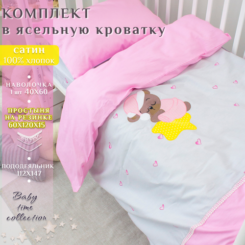 Постельное белье детское в кроватку для новорожденного Lime Time фланель / Детский комплект постельного белья, Ясельный серый, серебристый