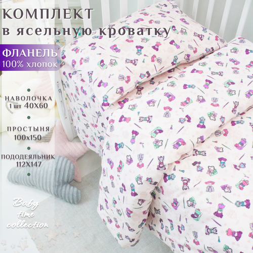 Постельное белье детское в кроватку для новорожденного LIMETIME фланель / Детский комплект постельного белья, Ясельный зеленый, белый