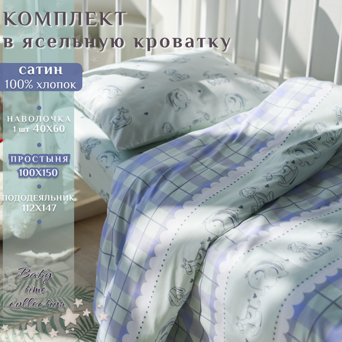 Цены на Постельное белье детское в кроватку для новорожденного LIMETIME фланель / Детский комплект постельного белья, Ясельный зеленый, белый в г. Москва