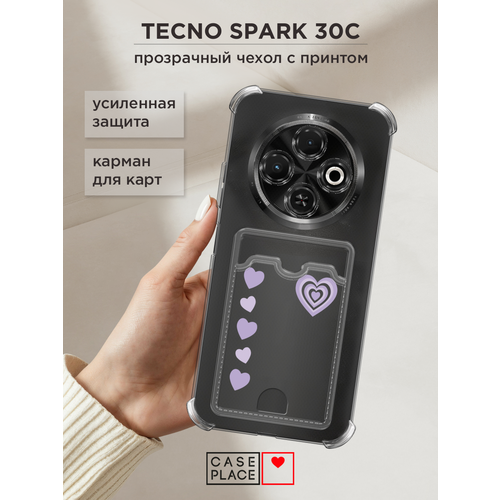 Чехол на Tecno Spark 30C (Текно Спарк 30C) с картой и принтом Прозрачный с сердечками