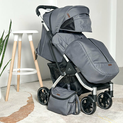 Прогулочная коляска JOYOY темно-серая на серебряной раме