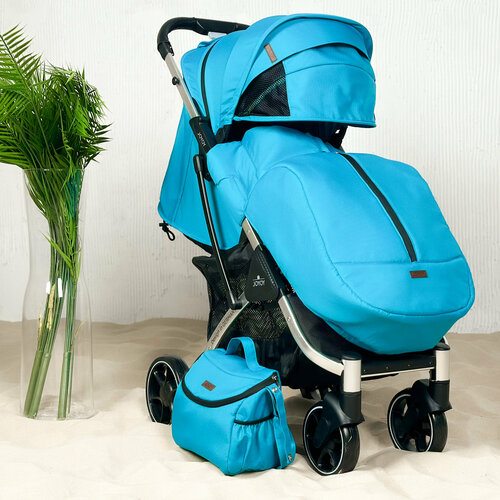 Прогулочная коляска JOYOY бирюзовая на серебряной раме