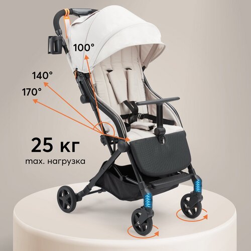 Прогулочная коляска Happy Baby Umma Pro, beige, цвет шасси: черный бежевый, beige