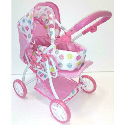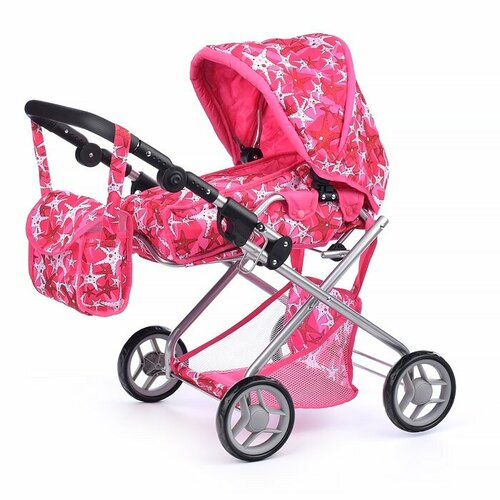 розовый, фиолетовый, белыйГулять с куклой удобнее, если у тебя есть колясочка, в которую ее можно посадить. Данная модель проста и понятна в использовании, у нее предусмотрены разные варианты расцветок, а также незамысловатая конструкция, с которой ребенок легко разберется. Особенности: Данная игрушечная коляска понравится маленьким девочкам, обожающим играть с куклами в дочки-матери. С помощью нее легко получится отправиться на прогулку, причем играть коляской можно как дома, так и на улице. Коляска относится к типу – трость. Это означает, что она является прогулочным вариантом и предназначена для перевозки кукол и игрушек в позе сидя. У коляски прочный металлический каркас, который обуславливает ее надежность и износостойкость. Коляска передвигается на 4 пластиковых сдвоенных колесиках, которые легко вращаются, позволяя ребенку прикладывать минимум усилий. Конструкция коляски продумана таким образом, что с ней очень легко и удобно обращаться, а ее легкий вес позволяет ребенку катать ее самостоятельно, без помощи взрослых. У коляски