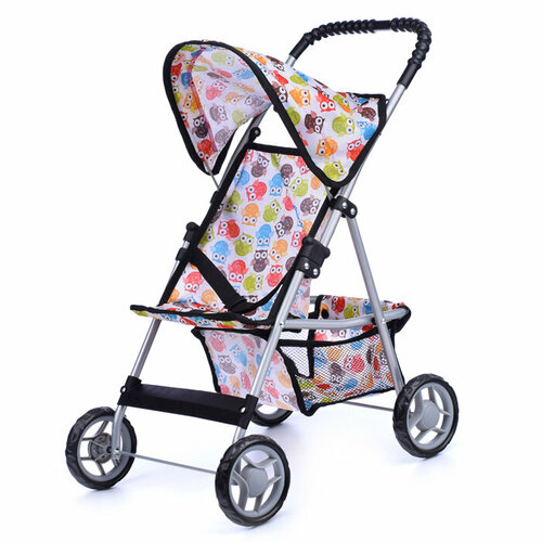 Коляска для кукол 9304М, металлическая, складная, прогулочная, с тентом, с корзиной, цвет совушки
