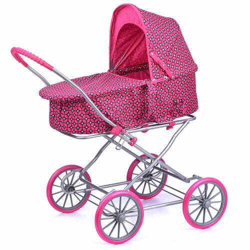 Коляска зима-лето 9336 для кукол, металлическая, съемная люлька, цвет малиновый