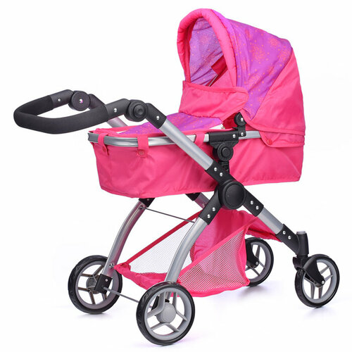 Коляска - трансформер 9620 для кукол, металлическая, регулируемая ручка, с корзиной, цвет фуксия