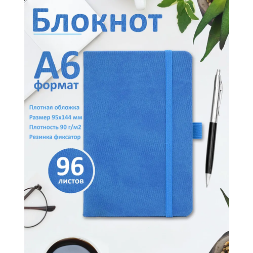 Блокнот в клетку А6 (95 x 144,5 мм) сшитый, 96л, голубой