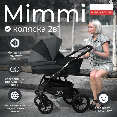 Всесезонная универсальная коляска 2в1 с надувными колесами Sweet Baby Mimmi Black