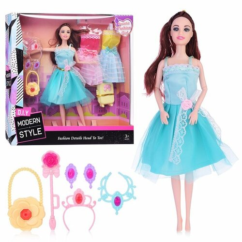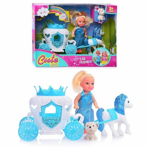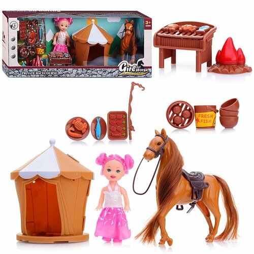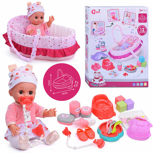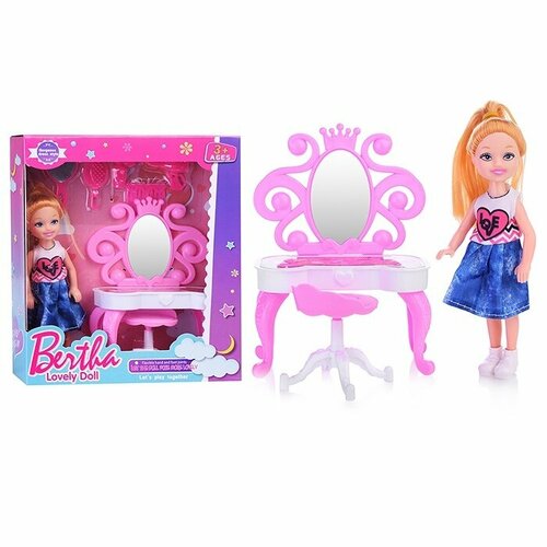 Пупс "Девочка" (столик для кормления, посуда, бутылочка) в коробке