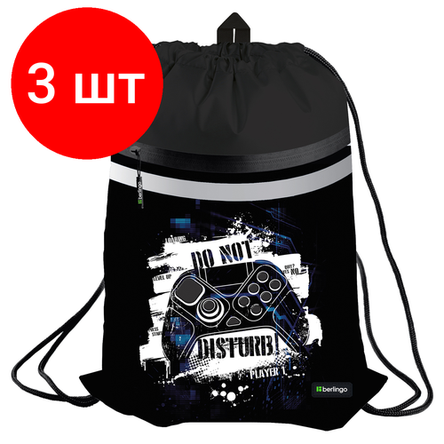 Комплект 3 шт, Мешок для обуви 1 отделение Berlingo "Do not disturb", 340*460мм, вентиляционная сеточка, светоотражающая лента, карман на молнии