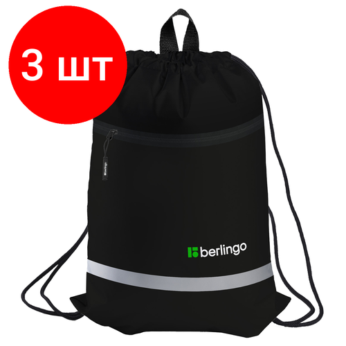 Комплект 3 шт, Мешок для обуви 1 отделение Berlingo "Basic black", 360*460мм, светоотражающая лента, карман на молнии