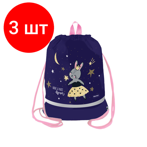 Комплект 3 шт, Мешок для обуви 1 отделение Berlingo "Bunny dream", 400*480мм, расширяющееся дно, светоотражающая лента, карман на молнии