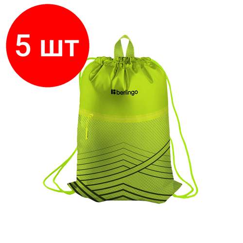 Комплект 5 шт, Мешок для обуви 1 отделение Berlingo "Green geometry", 360*470мм, карман на молнии