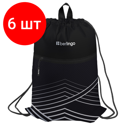 Комплект 6 шт, Мешок для обуви 1 отделение Berlingo "Black and white geometry", 360*470мм, карман на молнии