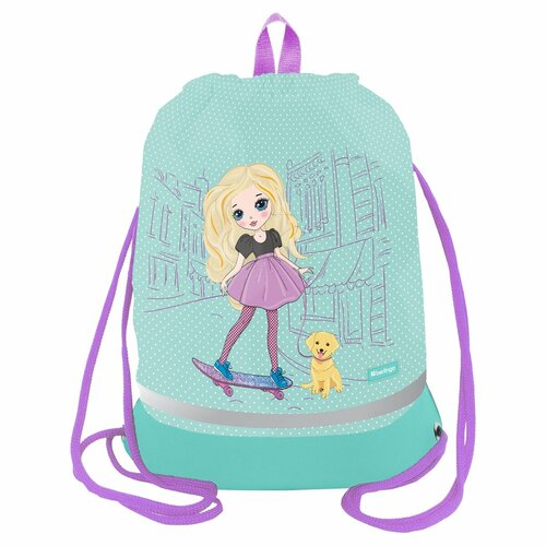 Мешок для обуви Berlingo "Pretty Girl", 1 отделение, 400х480 мм, расширяющееся дно, светоотражающий, карман (MS1095)