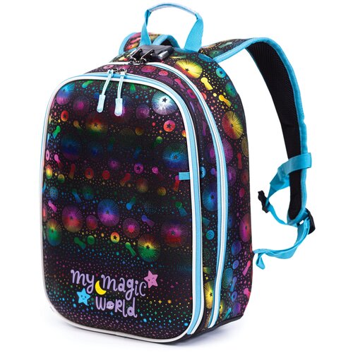 Рекомендовано "Научным центром здоровья детей" рамн. Ранец "трансформер", с одним отделением на молнии, фронтальным карманом на молнии и двумя боковыми карманами; внутри отделения - два разделителя с утягивающей резинкой; корпус рюкзака, спинка, дно и крышка выполнены из EVA; лямки анатомической S-образной формы, регулируются по длине; для безопасности рюкзак снабжен светоотражающими элементами. Размер 26 х 36 х 17 см