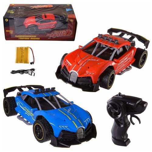Машинка на радиоуправлении Abtoys гоночная 2,4Ггц, резиновые колеса (синий, красный), аккумуляторный блок 1:18