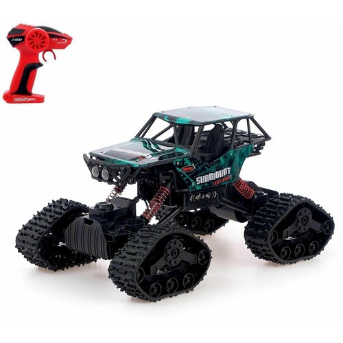 Джип радиоуправляемый Гусеничный вездеход, полный привод 4WD, работает от аккумулятора, цвет зелёный