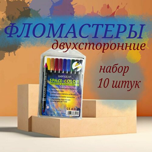 Фломастеры для рисования двухсторонние цветные 10 шт