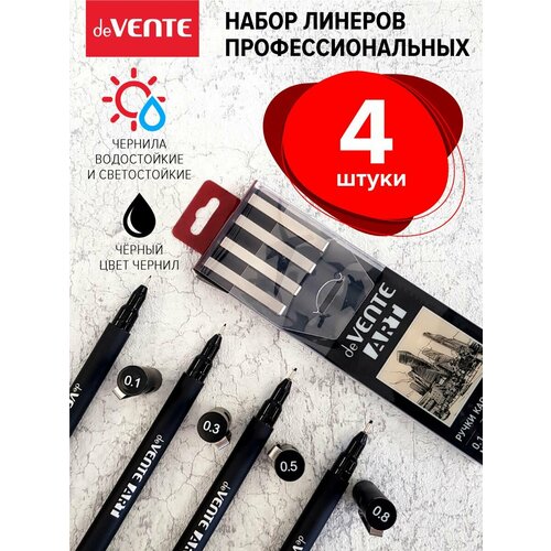 Набор капиллярных черных эстетичных ручек линеров " 4 шт, с разным диаметром пишущего узла, черные
