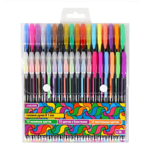 Набор гелевых ручек 36 цветов, 36 шт, 1,0 мм, блестки, неон, пастель Neon Black deVENTE 5051014