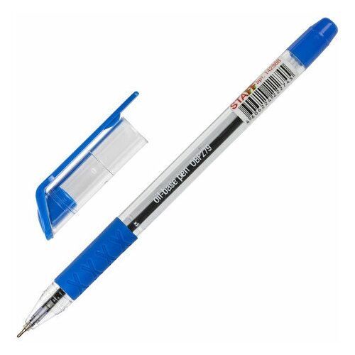 Ручка шариковая масляная с грипом STAFF "OBP-279", синяя, игольчатый узел 0,7 мм, линия письма 0,35 мм, 142988, 12 штук