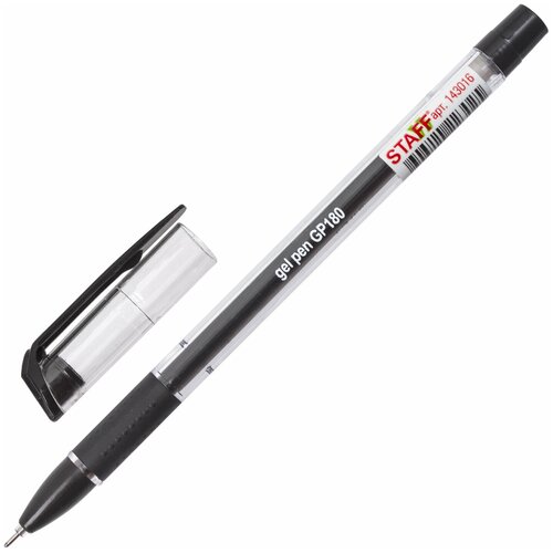 Ручка гелевая с грипом STAFF «College» GP-180, черная, корпус прозрачный, игольчатый узел 0,6 мм, линия письма 0,3 мм, 143016 12 шт.