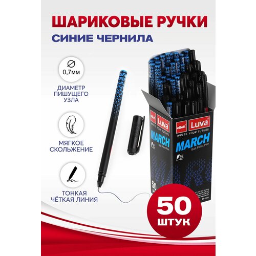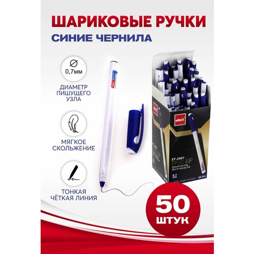 Ручки шариковые синие быстросохнущие Ellott, набор 50 штук, толщина линии 0,7 мм