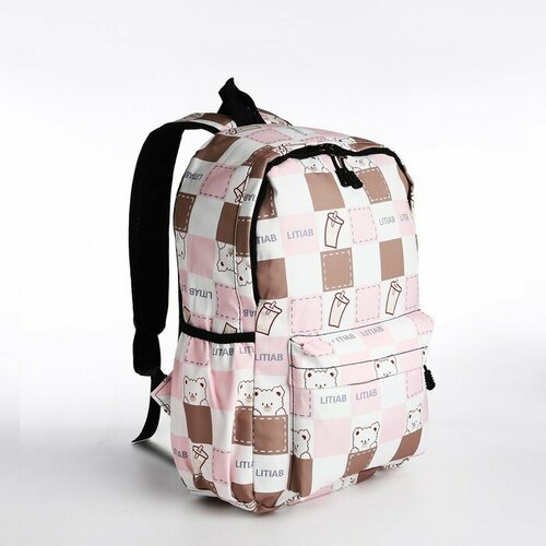 Рюкзак молодёжный из текстиля, 3 кармана, цвет бежевый/розовый