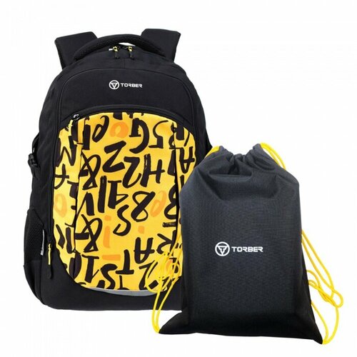 TORBER T9355-22-BLK-YEL-M Рюкзак torber class x, черно-желтый с принтом, 46 x 32 x 18 см мешок для сменной обуви в подарок!