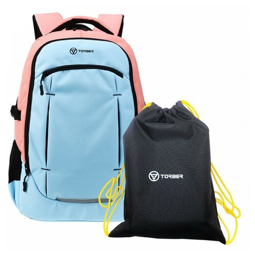 Школьный рюкзак TORBER CLASS X, розово-голубой, полиэстер 900D, 46 x 32 x 18 см, 21 л +Мешок для сменной обуви в подарок!