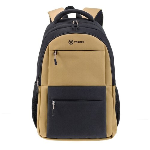 Школьный рюкзак TORBER CLASS X T2602-22-BEI-BLK, черно-бежевый, полиэстер 900D, 45 x 30 x 18 см, 17 л