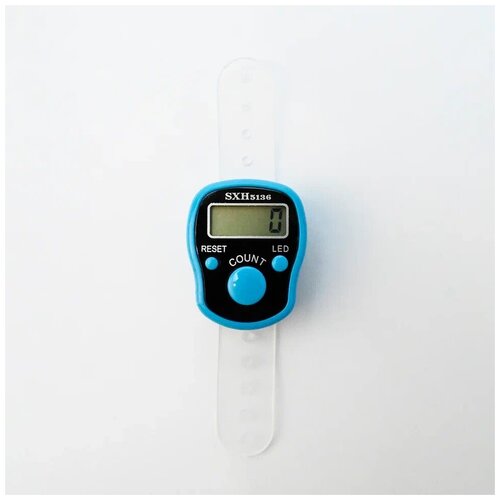Счетчик на палец ручной в разных цветах : голубой, синий, светло-голубой, зеленый, черный, оранжевый, коричневый, белый, желтый, розовый. Электронные четки (тасбих). Легкие в применении. Модель с подсветкой. С помощью силиконового ремешка удобно фиксируется на пальце. При помощи большой кнопки осуществляется отсчет. Счетчик на палец ручной удобный инструменты для рукоделия, с помощью счетчика (кликера) удобно следить за рядами при вязании. Кликер электронный можно использовать в разных направлениях, таких как счет бусинок при молитве, для подсчета рядов, при ходьбе для подсчета шагов.