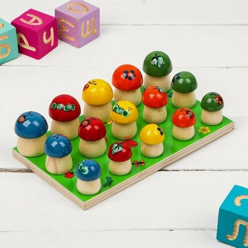 Грибочки», 10 шт, с цветными шляпками, размер 1 шт: 4.2 × 2.8 см — это прекрасное наглядное пособие, которое помогает ребёнку самостоятельно совершенствовать начальные математические навыки, развивать воображение, логику и мелкую моторику рук.