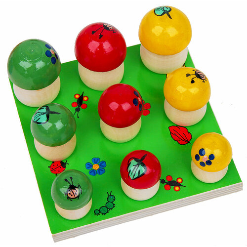 Обучающая игра "Грибочки на полянке", 10 шт, подставка со столбиками