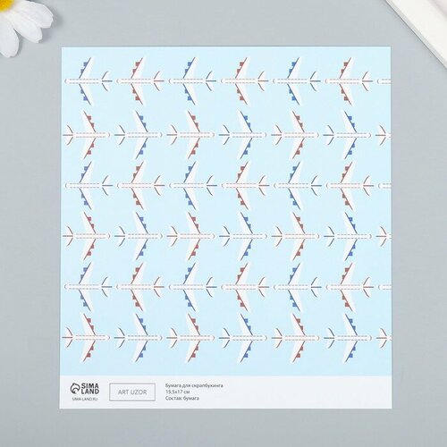 Бумага для скрапбукинга "Самолёты" плотность 180 гр 15,5х17 см