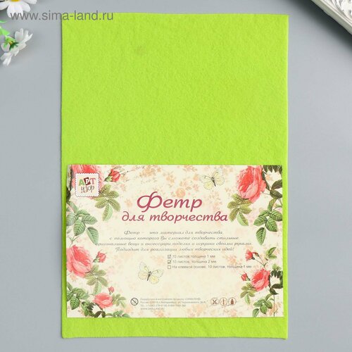 Фетр мягкий 1 мм "Ярко-зелёный" набор 10 листов формат А4