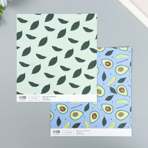 Бумага для скрапбукинга двусторонняя "Авокадо" плотность 180 гр 15,5х17 см