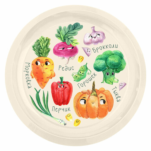 Тарелка детская D215мм с декором зверята светло-бежевый