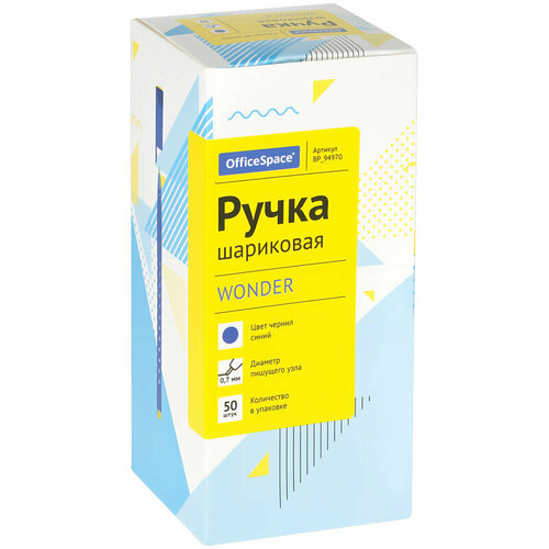 Ручка шариковая OfficeSpace "Wonder " синяя, 0,7 мм, 50 шт